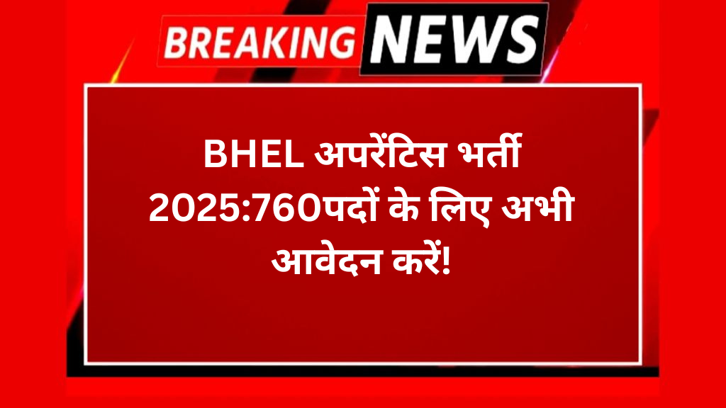 BHEL अपरेंटिस भर्ती 2025:760पदों के लिए अभी आवेदन करें!