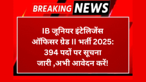 IB जूनियर इंटेलिजेंस ऑफिसर ग्रेड II भर्ती 2025: 394 पदों पर सूचना जारी ,अभी आवेदन करें!