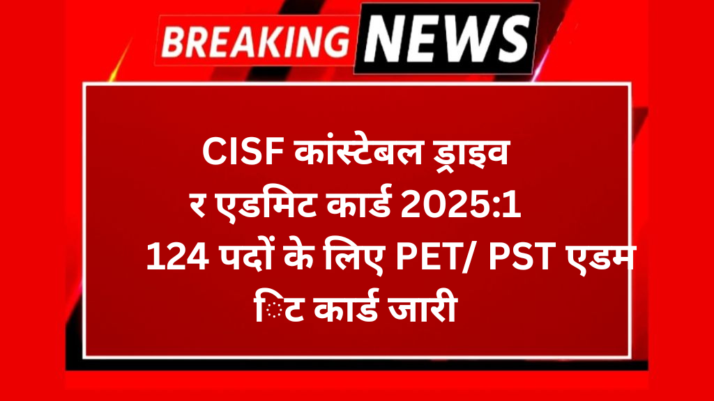 CISF कांस्टेबल ड्राइवर एडमिट कार्ड 2025:1124 पदों के लिए PET/ PST एडमिट कार्ड जारी