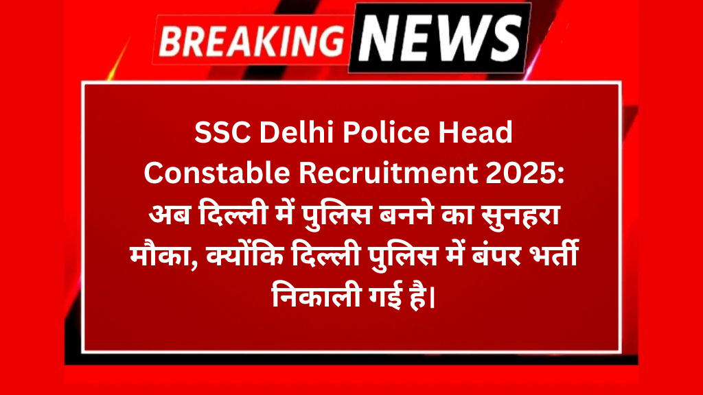 SSC Delhi Police Head Constable Recruitment 2025: अब दिल्ली में पुलिस बनने का सुनहरा मौका, क्योंकि दिल्ली पुलिस में बंपर भर्ती निकाली गई है। कर्मचारी चयन आयोग ने दिल्ली पुलिस हेड कांस्टेबल के 552 पदों पर भर्ती हेतु ऑनलाइन विज्ञापन जारी कर दिया है।