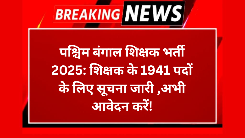 पश्चिम बंगाल शिक्षक भर्ती 2025: शिक्षक के 1941 पदों के लिए सूचना जारी ,अभी आवेदन करें!